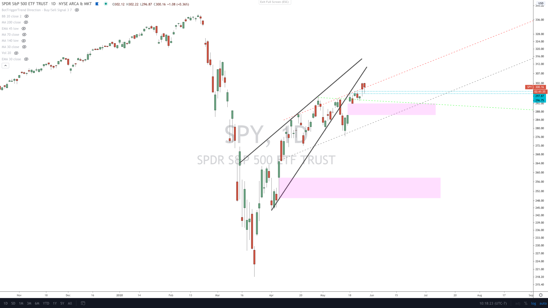 We're not the least bit concerned about the markets near-term as right now our bets are on the intermediate and long-term. There's a good chance we'll see some further upside, but after that we're very likely to see a massive retracement of epic proportions. It's an equal and opposite force of momentum in the market. Apple has just seen the greatest percentage gain over a 35-day period than at any other point in time since the bottom of the financial crisis. The same goes for the NASDAQ-100. Apple is up over 52% in just 35 days whereas the NASDAQ-100 is up 40%. When stocks move that quickly, there's a tendency to see an equally powerful retracement. As we noted, our expectation is Apple pushes down about 20% or so. From $330 a share, that would take the stock down to $265 a share. A mere 12-14% correction would take Apple down to $275-$290 from $330. As the SPY is concerned, I believe we've done a pretty good job reducing our cost-basis down to the low $20's and expect we will be able to produce a pretty good sized return on the next retracement. Notice that even a minor 10% correction puts the SPY down to $270 from $300. A 15% correction takes it down to $255. Notice that we're no longer even really betting on a 2nd wave or bad economic data. This is a bet on a regular retracement after an explosive rally. One we see virtually every time the market has a rally of this magnitude in such a short period of time. NO different than the Apple parabolic rally in Spring 2012 or any other near-term massive move. It's the short-term rate of change that leads to retracement. A Covid-19 second wave or the market waking up to economic reality is just icing on the cake. Neither of those things are needed. Even a recession isn't needed. The market and Apple are going to retrace given the size and scope of the move. We will just remain patient here and we will continue to trade around our current position on the SPY Jan $275 puts. We should have further opportunities to reduce our total cost-basis to under $20 with this move. Our goal will then shift to sell at $30 or a 50% gain on that eventual correction b/w now and January.